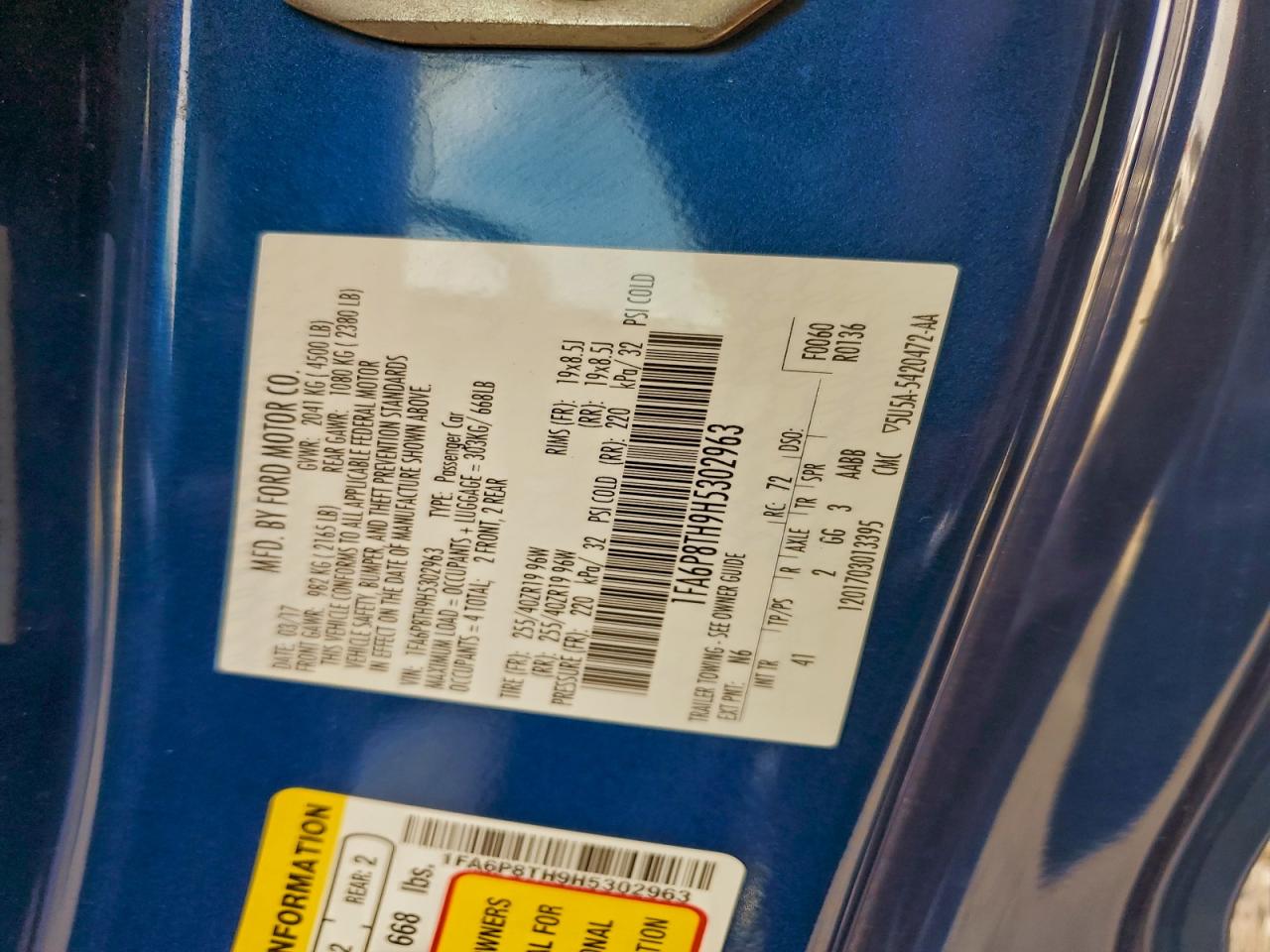 Цвет СинийЦилиндры 4Привод Задний приводVIN 1FA6P8TH9H5302963Состояние Заводится и едет (проверено)Повреждения Передняя или задняя AutoRIA
