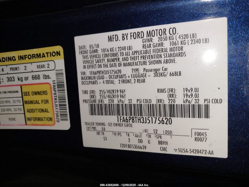 2018 FORD MUSTANG 2018 року Бензин, 2.3, Задний привод, vin - 1FA6P8TH3J5175620 из США