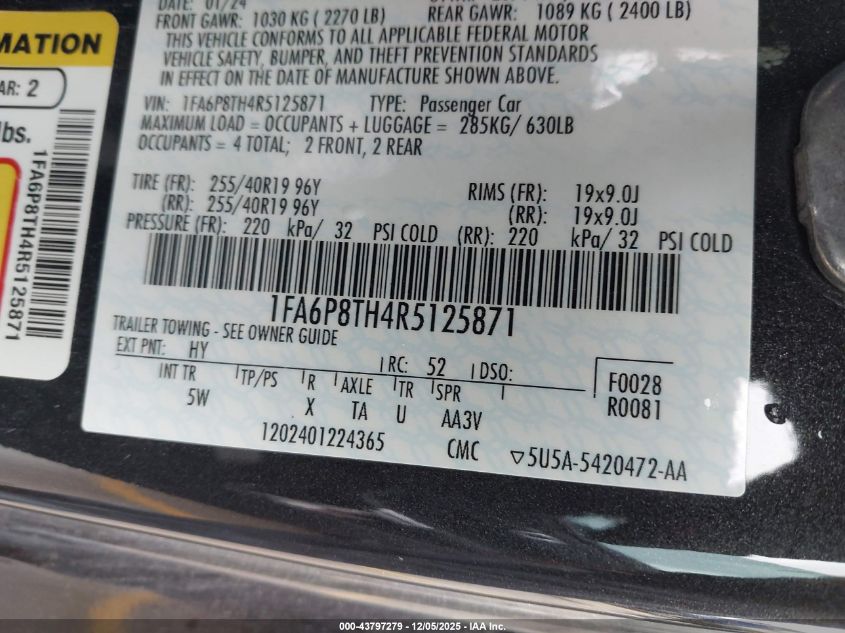 2024 FORD MUSTANG 2024 року Бензин, 2.3, Задний привод, vin - 1FA6P8TH4R5125871 из США