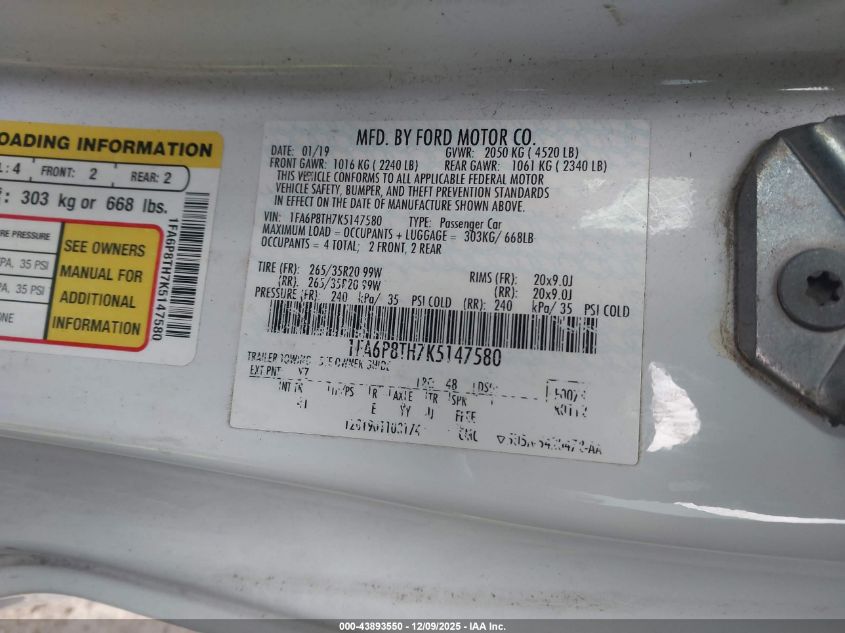 Цвет БелыйЦилиндры 4Привод Задний приводVIN 1FA6P8TH7K5147580Состояние Заводится и едет (проверено)Повреждения Передняя или задняя AutoRIA