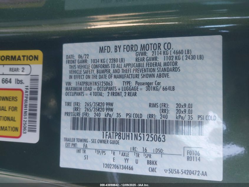 Цвет ЗеленыйЦилиндры 4Привод Задний приводVIN 1FATP8UH1N5125063Состояние СтационарноПовреждения Задняя левая AutoRIA