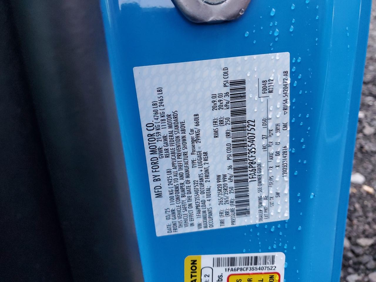 2025 FORD MUSTANG 2025 року Бензин, 5.0, Задний привод, vin - 1FA6P8CF3S5407522 из США