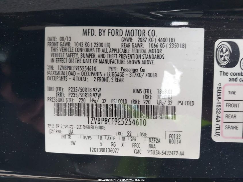 Цвет ЧерныйЦилиндры 8Привод Задний приводVIN 1ZVBP8CF9E5254610Состояние Заводится и едет (проверено)Повреждения По всему авто AutoRIA