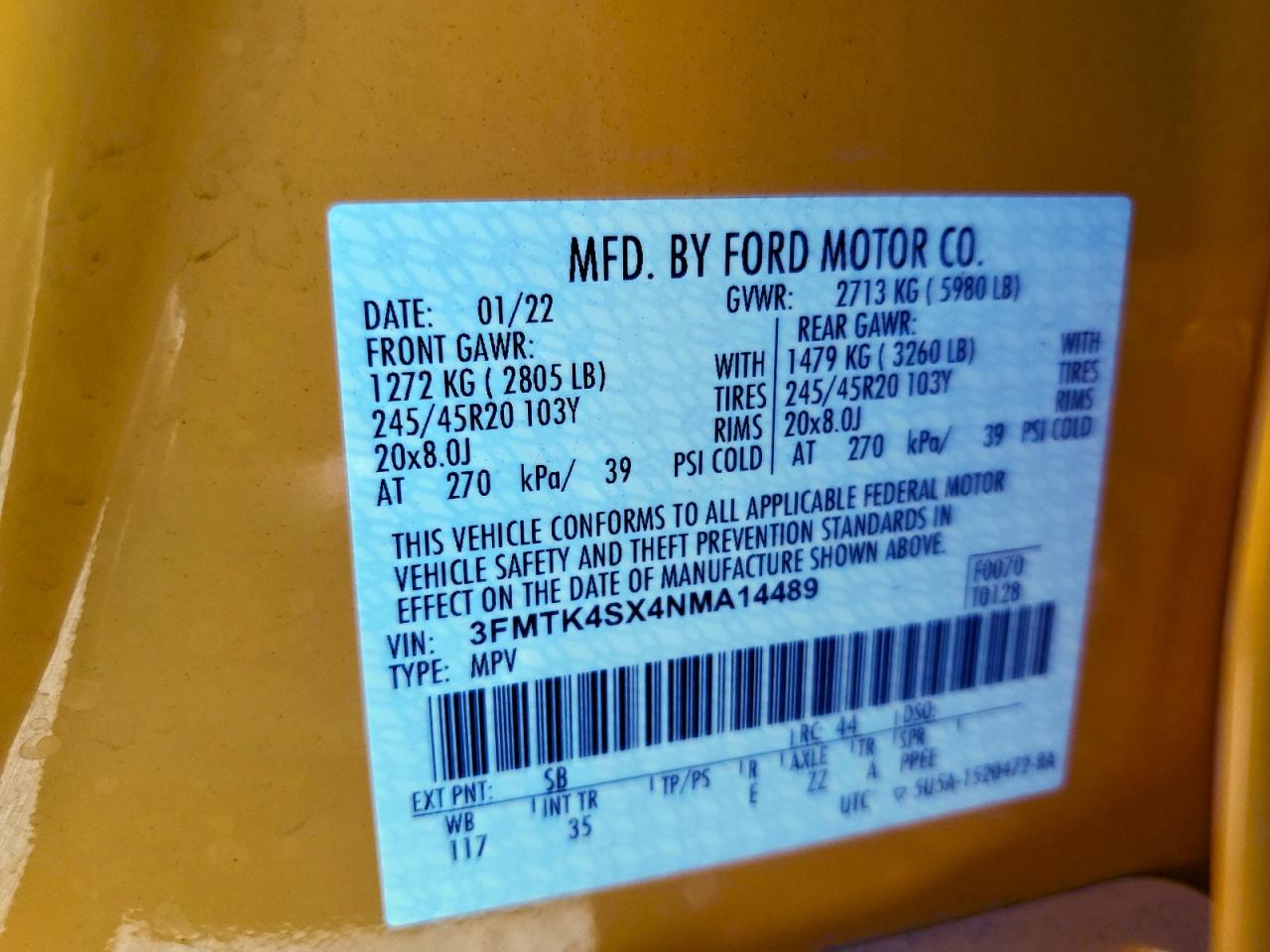 Цвет ЖелтыйПривод Полный приводVIN 3FMTK4SX4NMA14489Состояние НеизвестноПовреждения Передняя или задняя AutoRIA