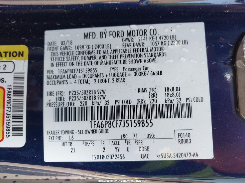 2018 FORD MUSTANG 2018 року Бензин, 5.0, Задний привод, vin - 1FA6P8CF7J5159855 из США
