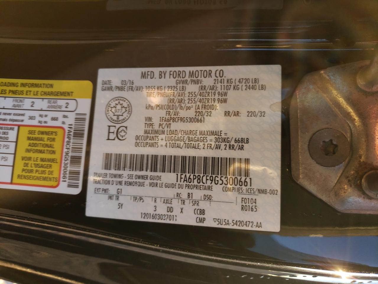 Цвет ЧерныйЦилиндры 8Привод Задний приводVIN 1FA6P8CF9G5300661Состояние Заводится и едет (проверено)Повреждения Механические повреждения AutoRIA