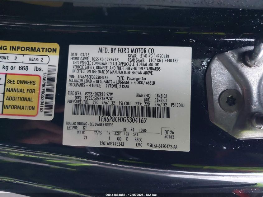Цвет ЧерныйЦилиндры 8Привод Задний приводVIN 1FA6P8CF0G5304162Состояние СтационарноПовреждения Задняя AutoRIA
