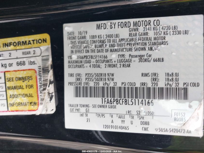 2020 FORD MUSTANG 2020 року Бензин, 5.0, Задний привод, vin - 1FA6P8CF8L5114166 из США