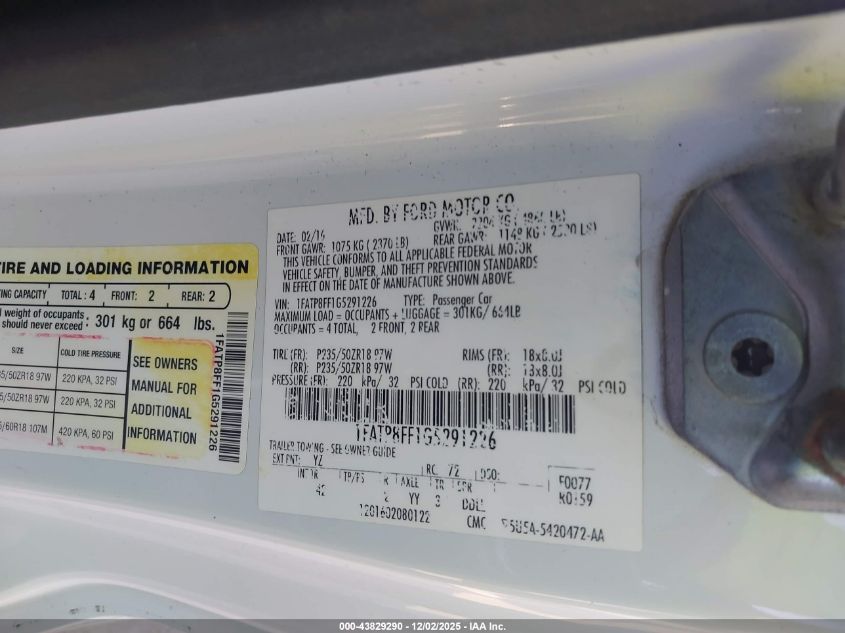 Цвет БелыйЦилиндры 8Привод Задний приводVIN 1FATP8FF1G5291226Состояние Заводится и едет (проверено)Повреждения Передняя и задняя AutoRIA