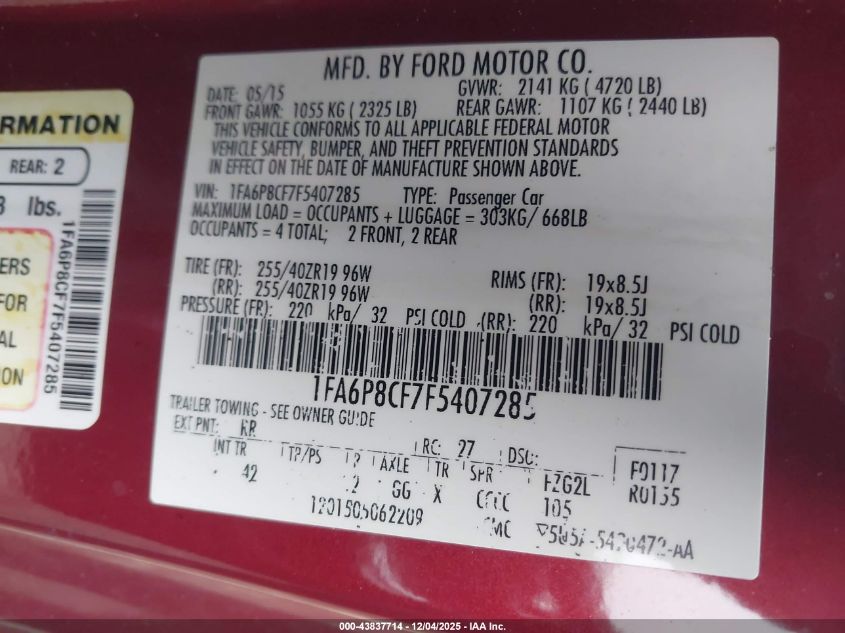 2015 FORD MUSTANG