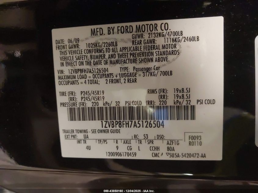 Цвет ЧерныйЦилиндры 8Привод Задний приводVIN 1ZVBP8FH7A5126504Состояние СтационарноПовреждения Передняя или задняя AutoRIA
