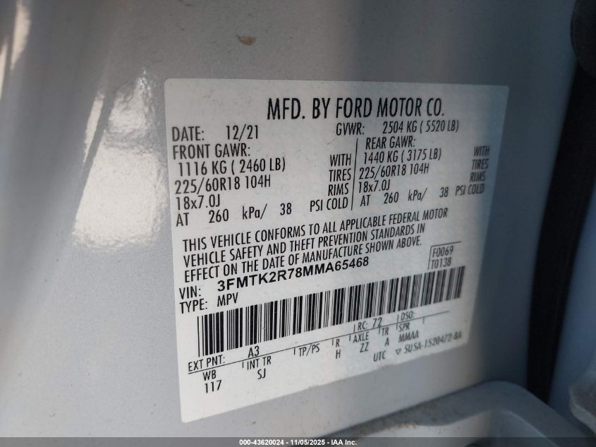 Цвет БелыйПривод Задний приводVIN 3FMTK2R78MMA65468Состояние СтационарноПовреждения Левая сторона AutoRIA