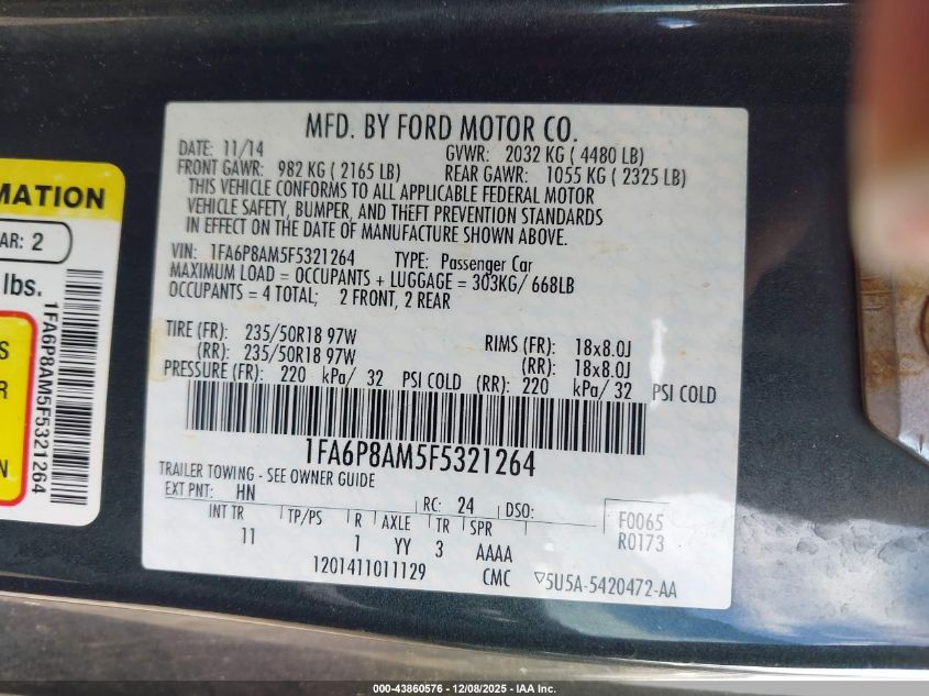 Цвет ЗеленыйЦилиндры 6Привод Задний приводVIN 1FA6P8AM5F5321264Состояние Заводится и едет (проверено)Повреждения Передняя или задняя AutoRIA