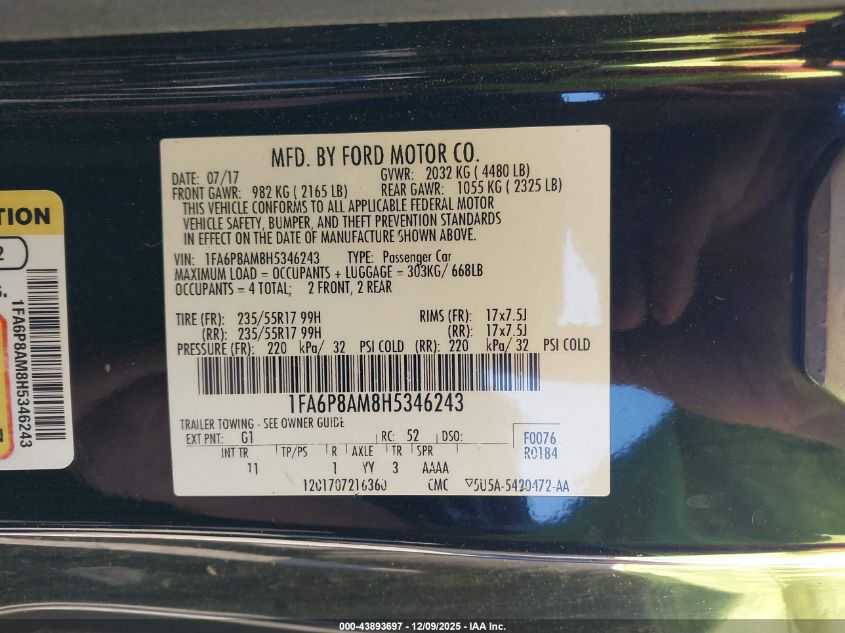 Цвет ЧерныйЦилиндры 6Привод Задний приводVIN 1FA6P8AM8H5346243Состояние Заводится и едет (проверено)Повреждения Передняя или задняя AutoRIA