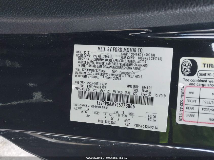 Цвет ЧерныйЦилиндры 6Привод Задний приводVIN 1ZVBP8AM9C5273866Состояние Заводится и едет (проверено)Повреждения Передняя или задняя AutoRIA