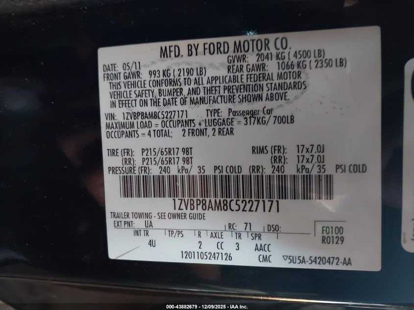 Цвет ЧерныйЦилиндры 6Привод Задний приводVIN 1ZVBP8AM8C5227171Состояние СтационарноПовреждения Передняя или задняя AutoRIA