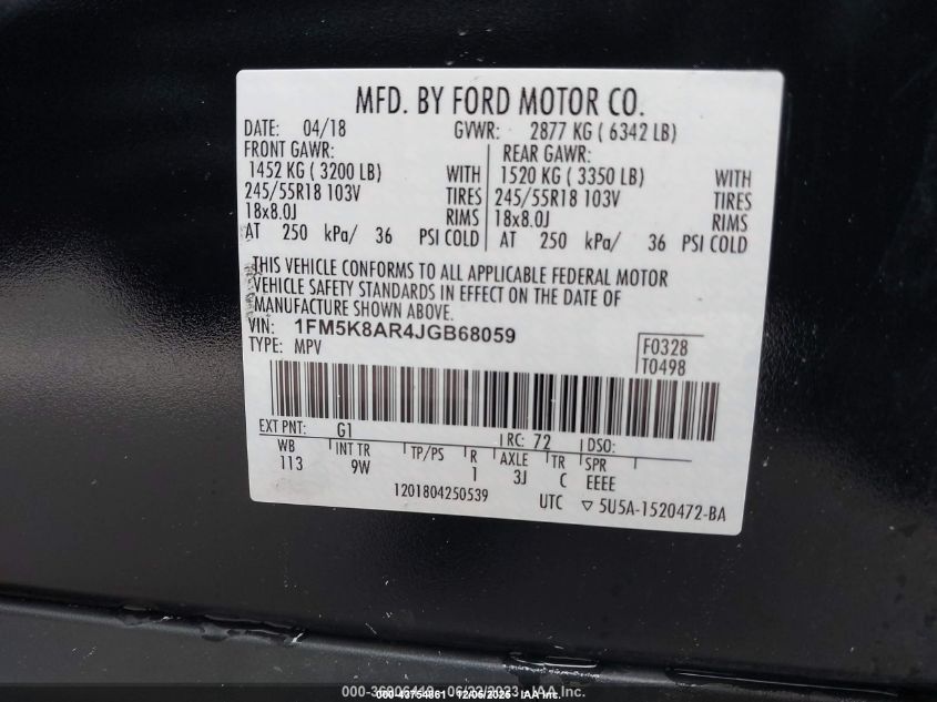 Цвет ЧерныйЦилиндры 6Привод Полный приводVIN 1FM5K8AR4JGB68059Состояние СтационарноПовреждения Задняя левая