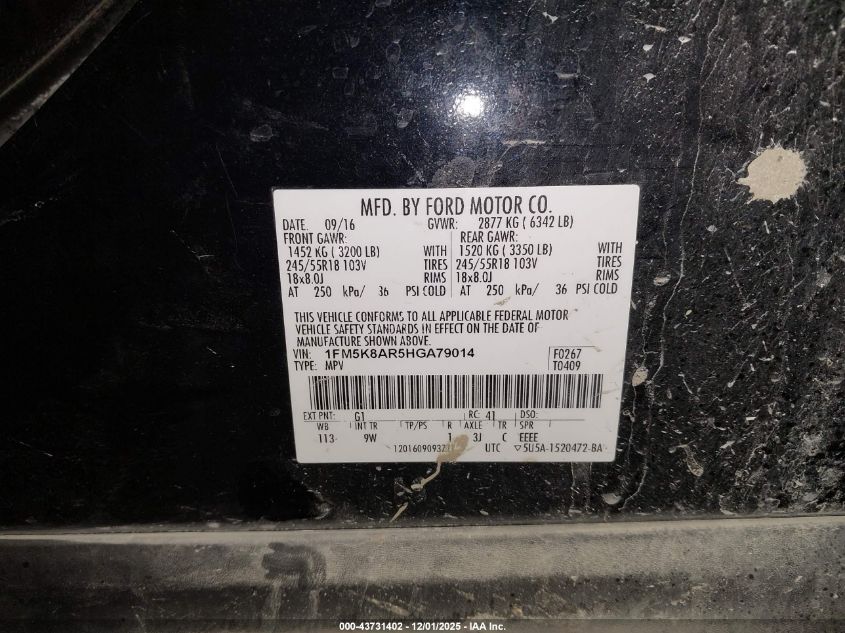 Цвет ЧерныйЦилиндры 6Привод Полный приводVIN 1FM5K8AR5HGA79014Состояние Заводится и едет (проверено)Повреждения Передняя правая