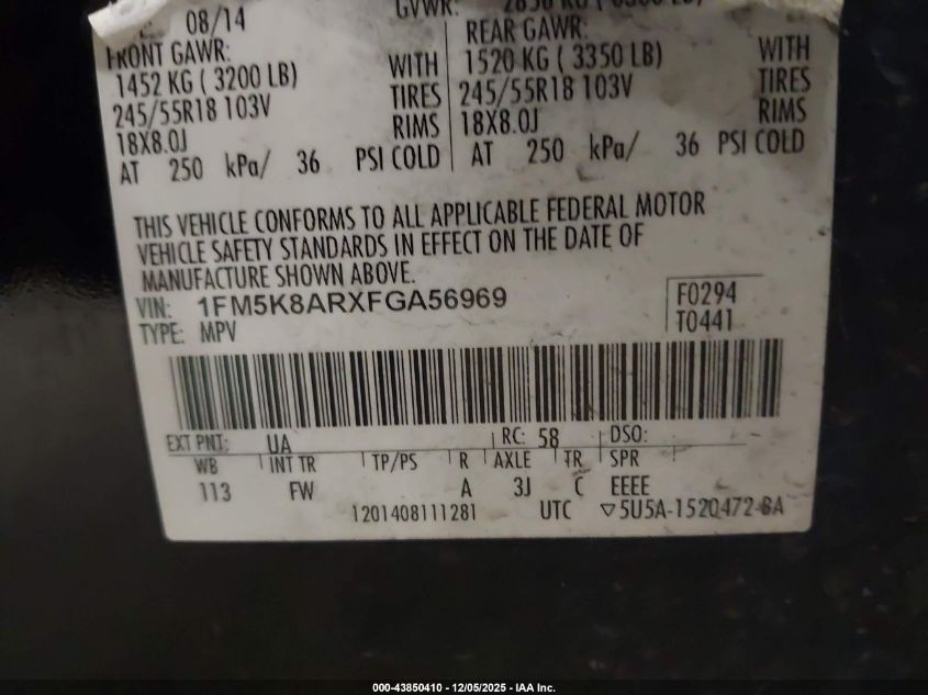 2015 FORD POLICE INTERCEPTOR 2015 року Бензин, 3.7, Полный привод, vin - 1FM5K8ARXFGA56969 из США
