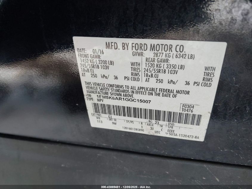 2016 FORD POLICE INTERCEPTOR 2016 року Бензин, 3.7, Полный привод, vin - 1FM5K8AR1GGC15007 из США