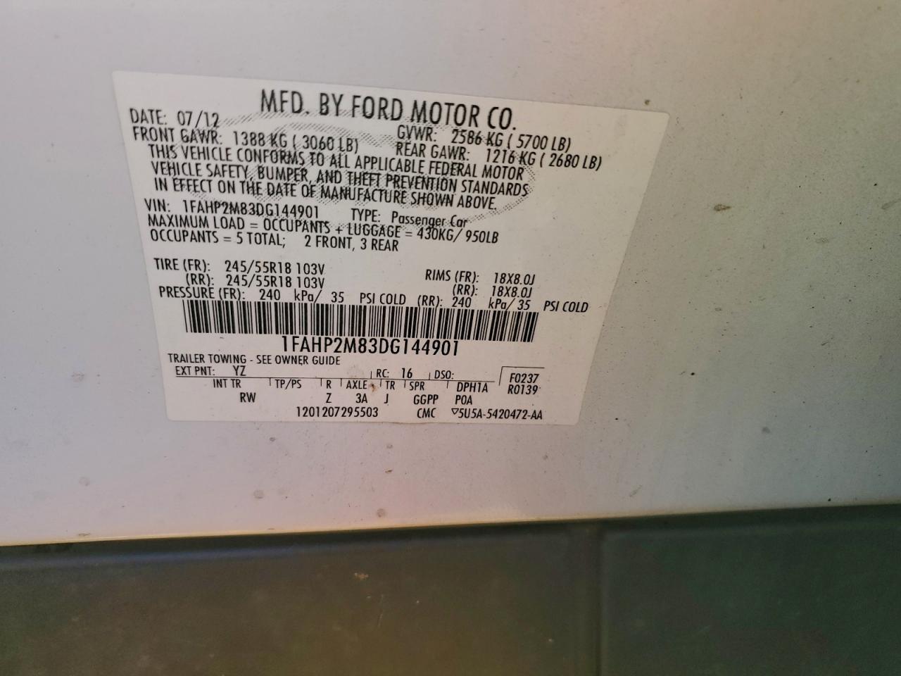 Цвет БелыйЦилиндры 6Привод Полный приводVIN 1FAHP2M83DG144901Состояние Заводится и едет (проверено)Повреждения Передняя или задняя AutoRIA