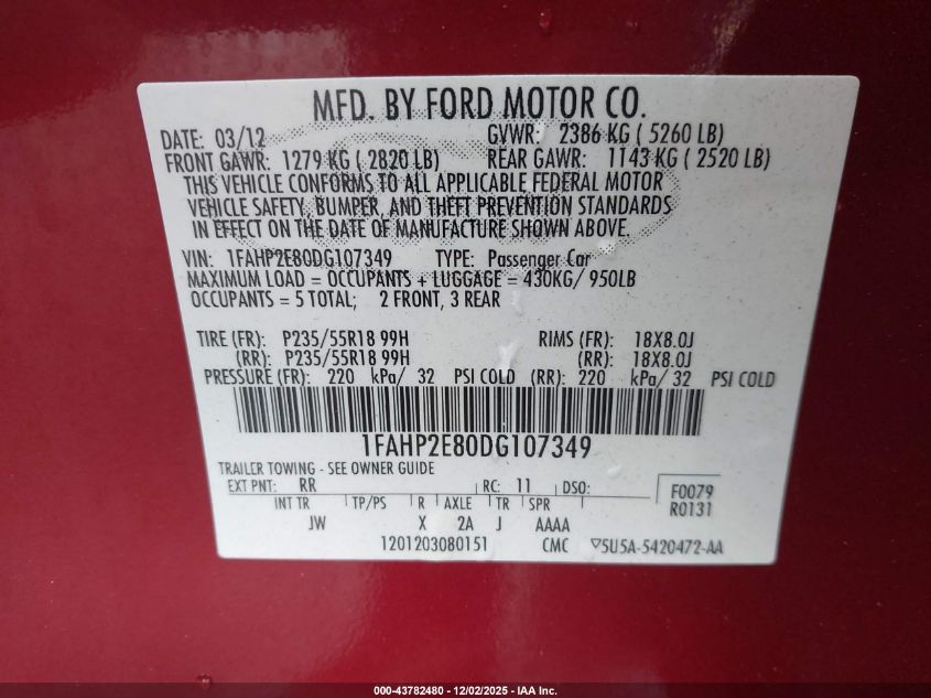 Цвет КрасныйЦилиндры 6Привод Передний приводVIN 1FAHP2E80DG107349Состояние Заводится и едет (проверено)Повреждения Передняя или задняя AutoRIA