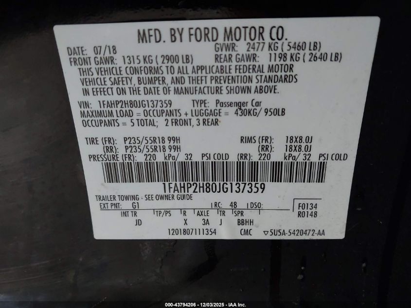 Цвет ЧерныйЦилиндры 6Привод Полный приводVIN 1FAHP2H80JG137359Состояние Заводится и едет (проверено)Повреждения Передняя левая AutoRIA