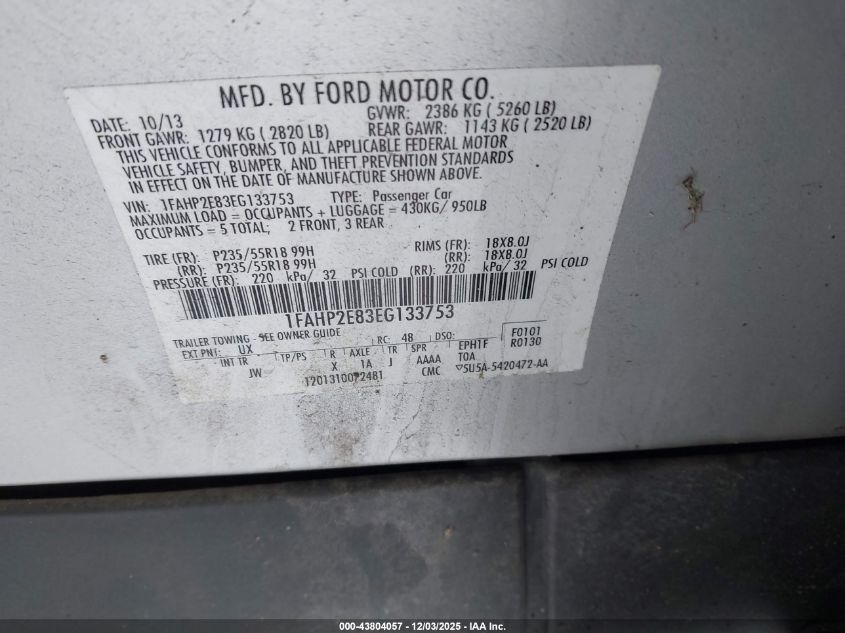 2014 FORD TAURUS 2014 року Бензин, 3.5, Передний привод, vin - 1FAHP2E83EG133753 из США
