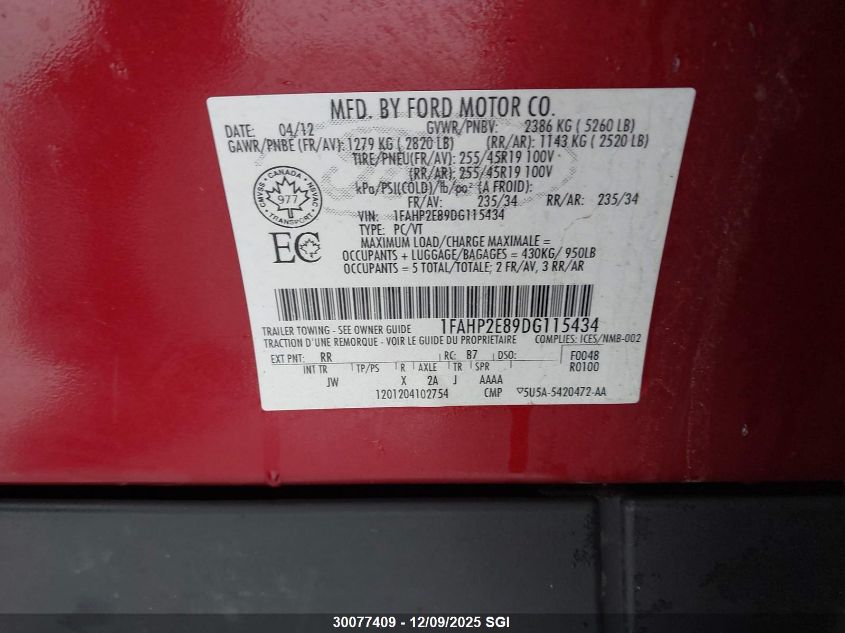 2013 FORD TAURUS 2013 року Бензин, , Передний привод, vin - 1FAHP2E89DG115434 из США