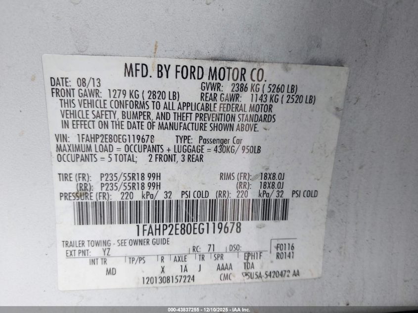 2014 FORD TAURUS 2014 року Бензин, 3.5, Передний привод, vin - 1FAHP2E80EG119678 из США
