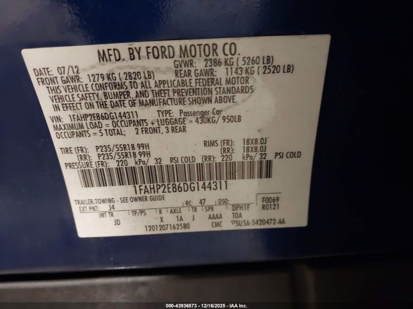 Цвет СинийЦилиндры 6Привод Передний приводVIN 1FAHP2E86DG144311Состояние Заводится и едет (проверено)Повреждения Передняя или задняя AutoRIA