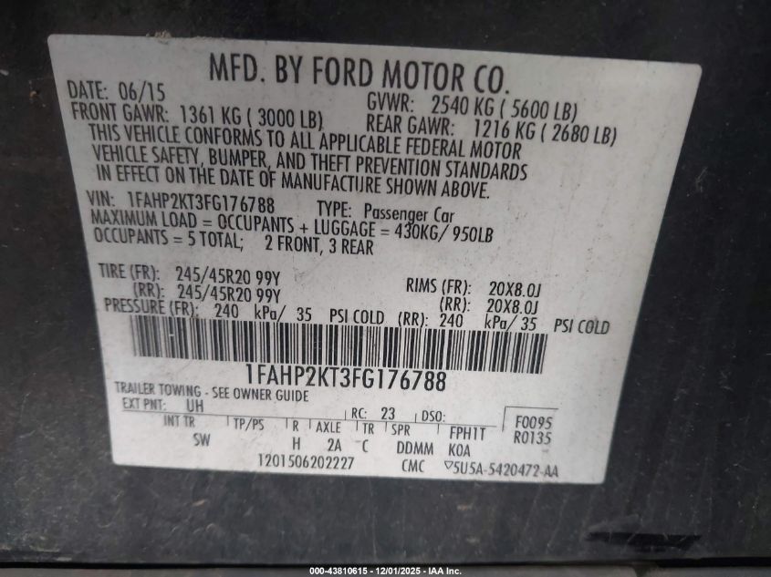 2015 FORD TAURUS 2015 року Бензин, 3.5, Полный привод, vin - 1FAHP2KT3FG176788 из США
