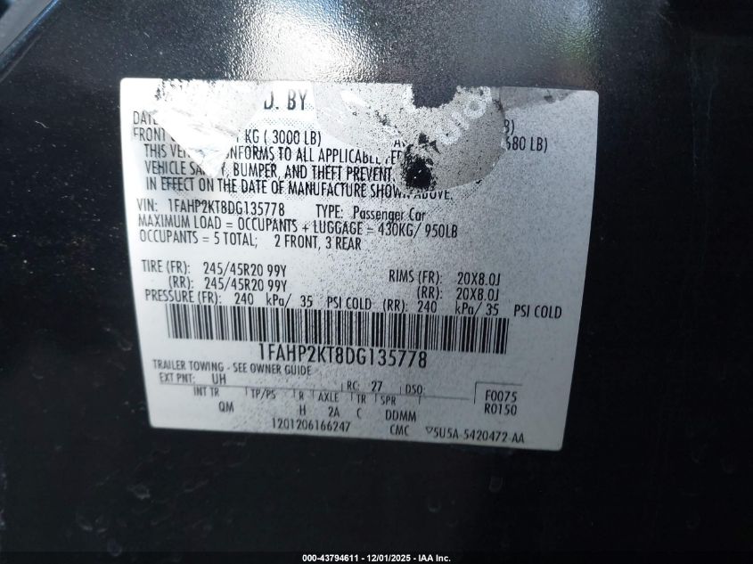 2013 FORD TAURUS 2013 року Бензин, 3.5, Полный привод, vin - 1FAHP2KT8DG135778 из США