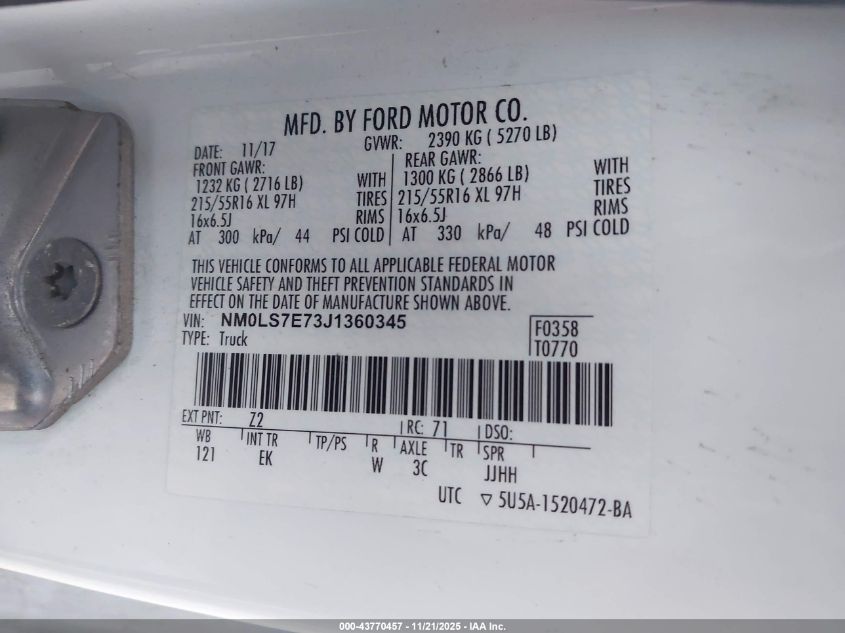 2018 FORD TRANSIT CONNECT XL