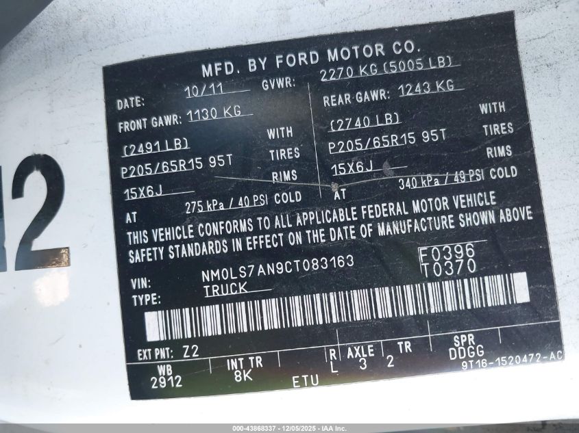 2012 FORD TRANSIT CONNECT 2012 року Бензин, 2.0, Передний привод, vin - NM0LS7AN9CT083163 из США
