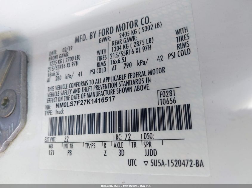 2019 FORD TRANSIT CONNECT 2019 року Бензин, 2.0, Передний привод, vin - NM0LS7F27K1416517 из США