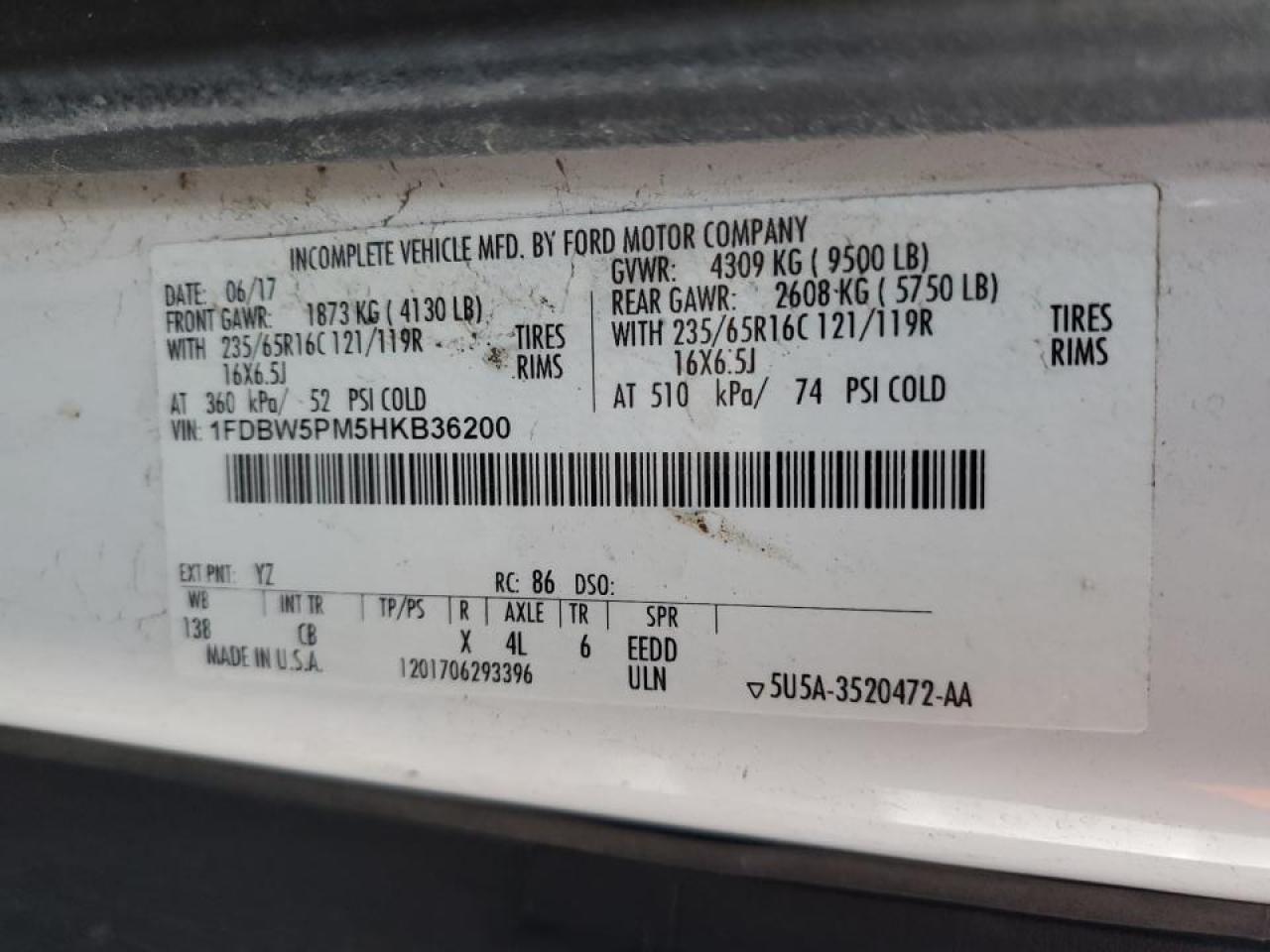2017 FORD TRANSIT 2017 року Бензин, 3.7, Задний привод, vin - 1FDBW5PM5HKB36200 из США