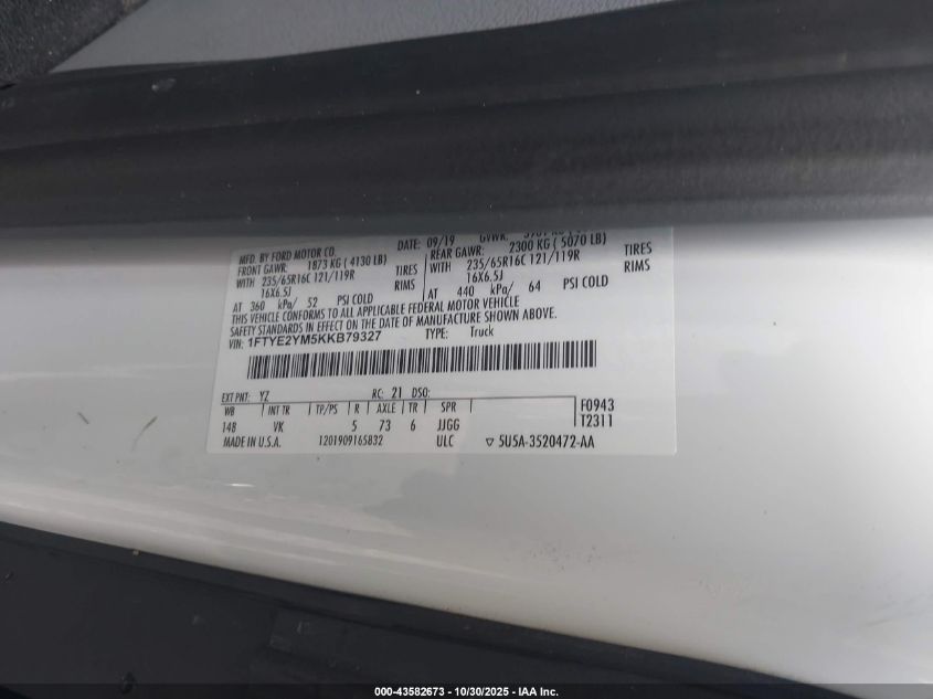 2019 FORD TRANSIT 2019 року Бензин, 3.7, Задний привод, vin - 1FTYE2YM5KKB79327 из США
