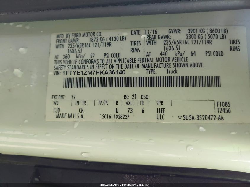 2017 FORD TRANSIT 2017 року Бензин, 3.7, Задний привод, vin - 1FTYE1ZM7HKA36140 из США