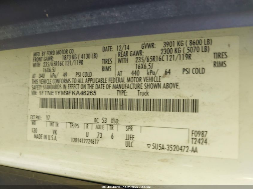 2015 FORD TRANSIT T-150