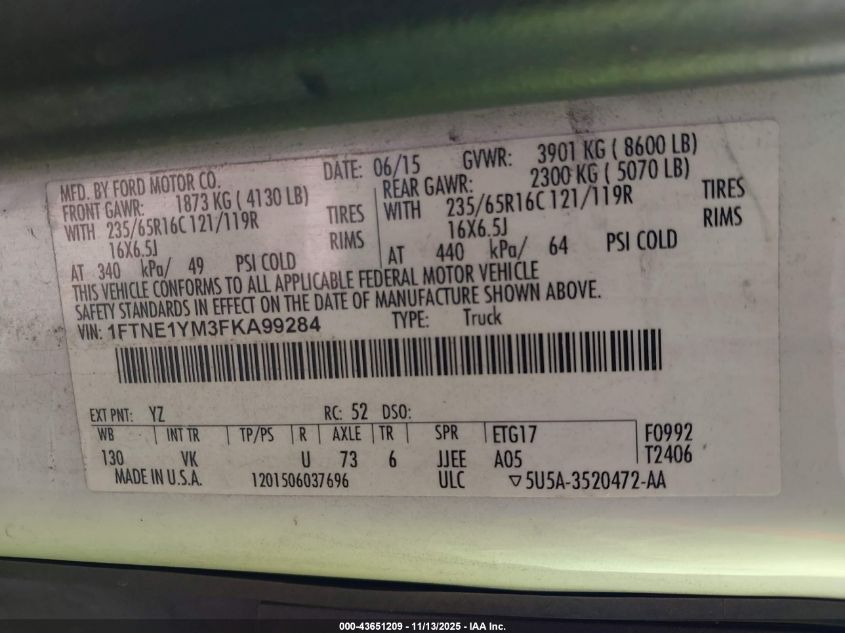 2015 FORD TRANSIT 2015 року Бензин, 3.7, Задний привод, vin - 1FTNE1YM3FKA99284 из США