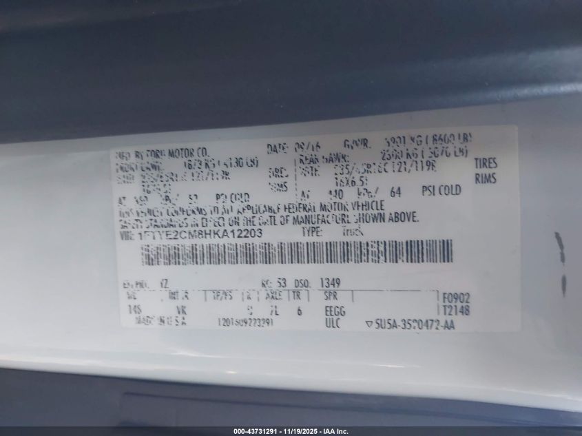 2017 FORD TRANSIT 2017 року Бензин, 3.7, Задний привод, vin - 1FTYE2CM8HKA12203 из США