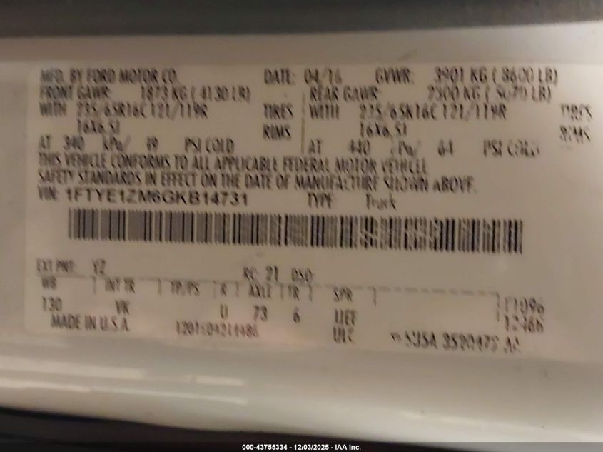 2016 FORD TRANSIT 2016 року Бензин, 3.7, Задний привод, vin - 1FTYE1ZM6GKB14731 из США