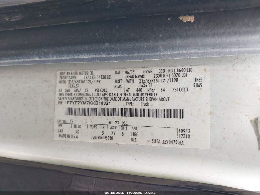 Цвет БелыйЦилиндры 6Привод Задний приводVIN 1FTYE2YM7KKB18321Состояние Заводится и едет (проверено)Повреждения Град AutoRIA