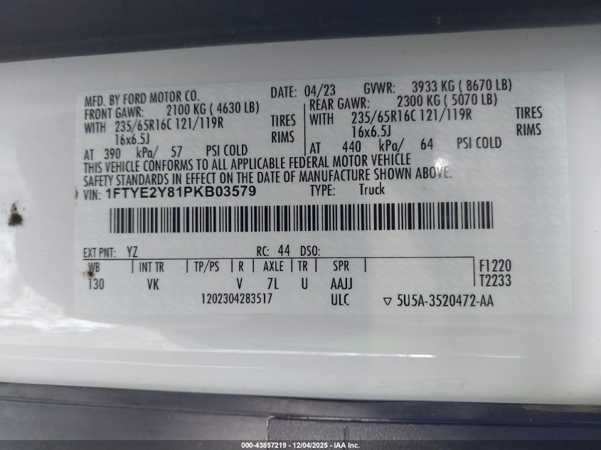 2023 FORD TRANSIT 2023 року Бензин, 3.5, Полный привод, vin - 1FTYE2Y81PKB03579 из США