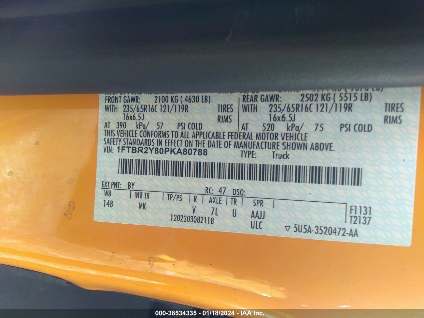 2023 FORD TRANSIT 2023 року Бензин, 3.5, Полный привод, vin - 1FTBR2Y80PKA80788 из США