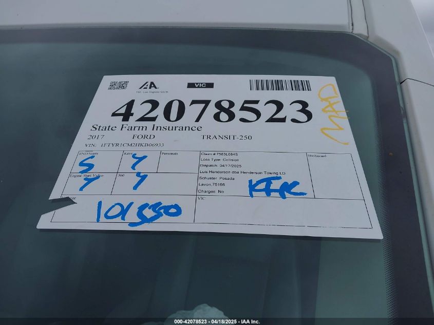 2017 FORD TRANSIT T-250