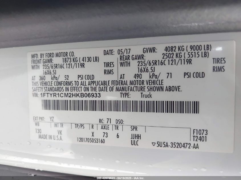 2017 FORD TRANSIT T-150