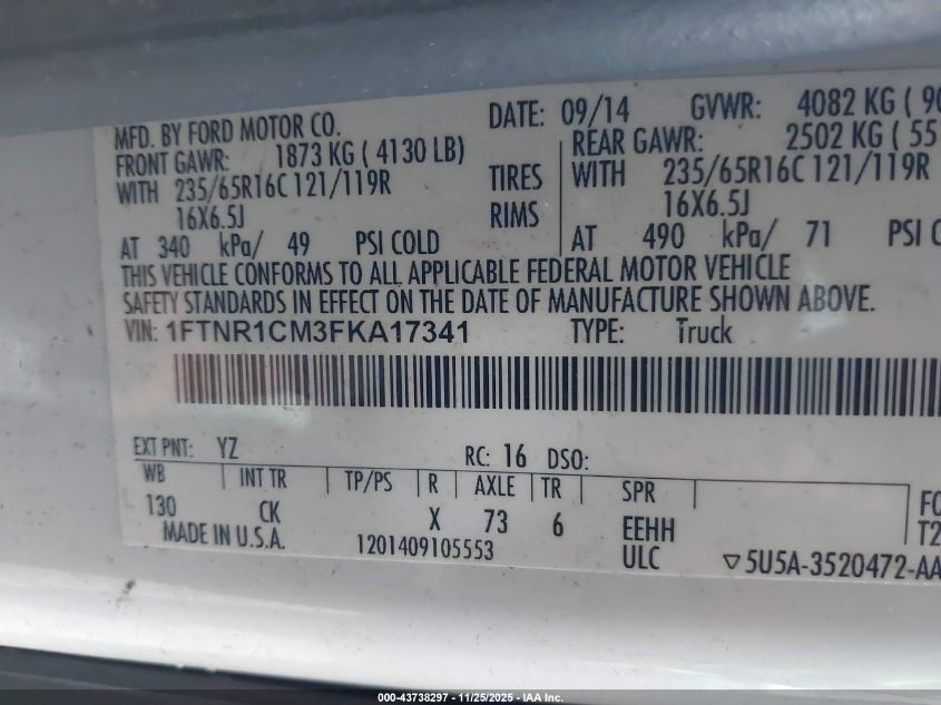 2015 FORD TRANSIT 2015 року Бензин, 3.7, Задний привод, vin - 1FTNR1CM3FKA17341 из США