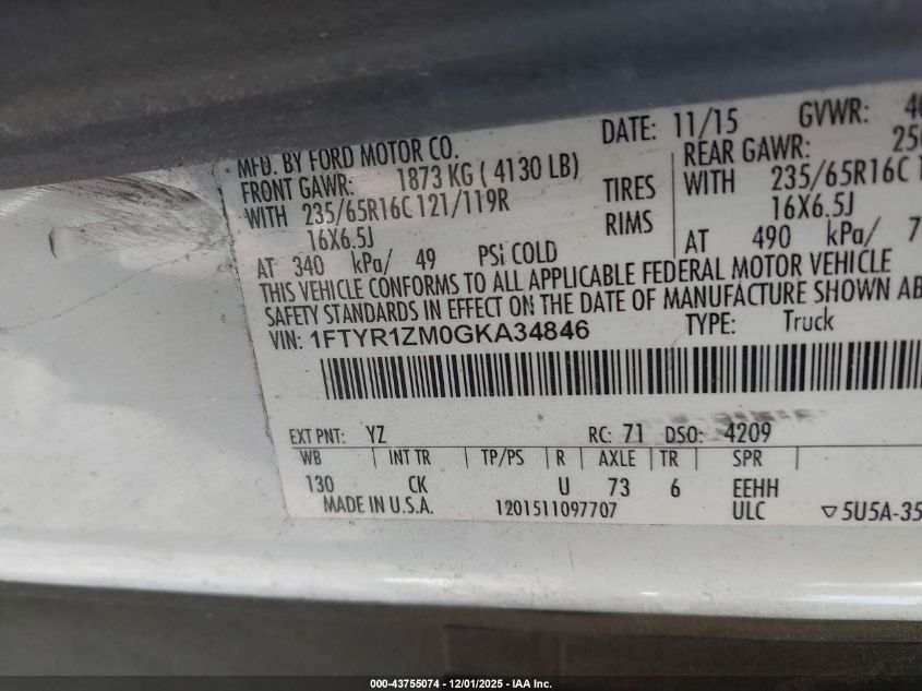 2016 FORD TRANSIT 2016 року Бензин, 3.7, Задний привод, vin - 1FTYR1ZM0GKA34846 из США